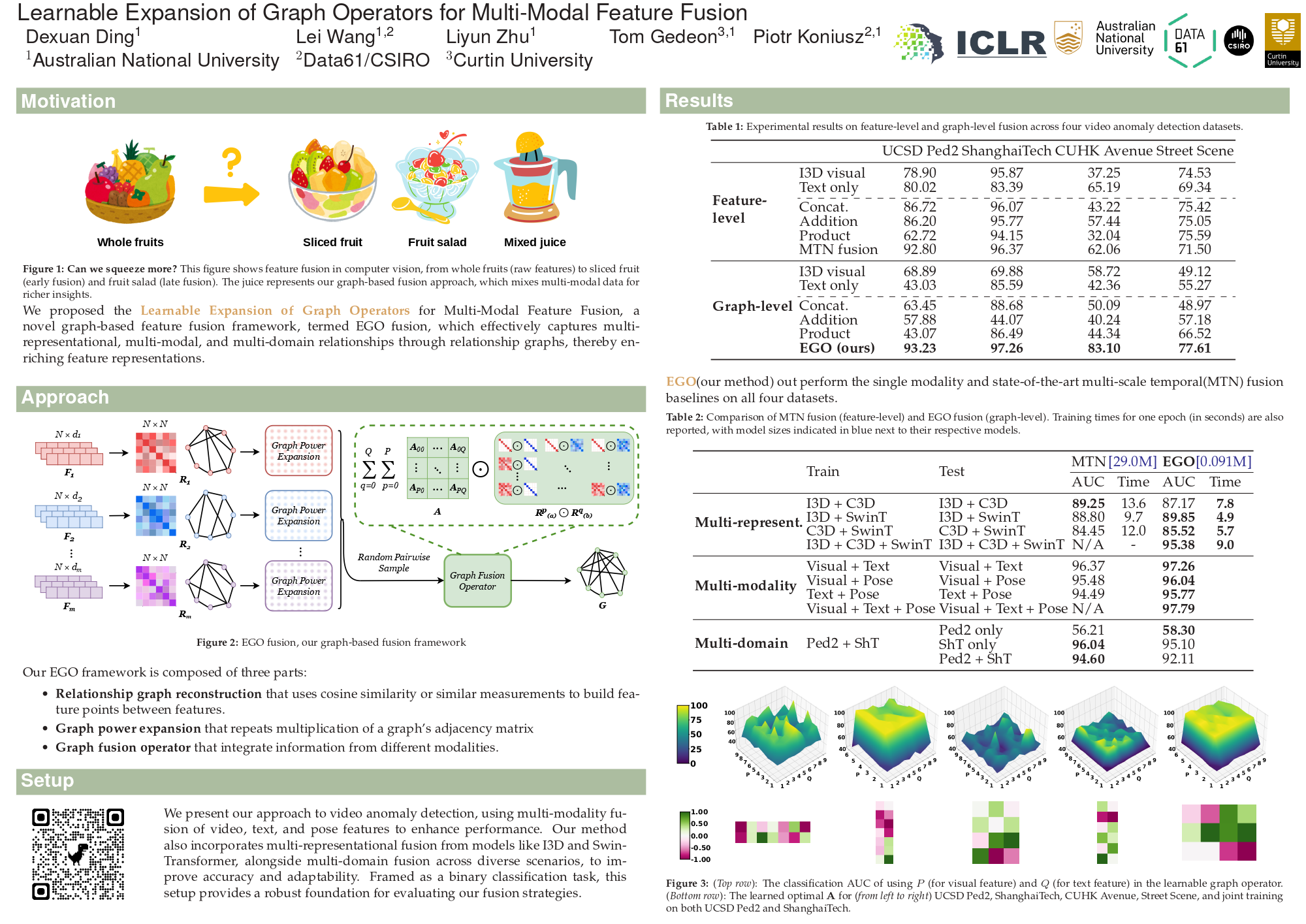 | Learnable Expansion of Graph Operators for Multi-Modal Feature Fusion D Ding, L Wang$^\dagger$, L Zhu, T Gedeon, P Koniusz International Conference on Learning Representations (ICLR) | [A*] Poster | 2025 |
